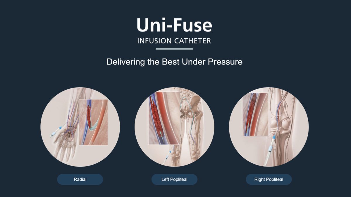 Die Uni-Fuse-Katheter nutzen diese bewährte Technologie, um eine schnellere und wirksamere Behandlung von Blutgerinnseln zu ermöglichen, und ihre robustere Konstruktion macht sie vielseitiger einsetzbar.